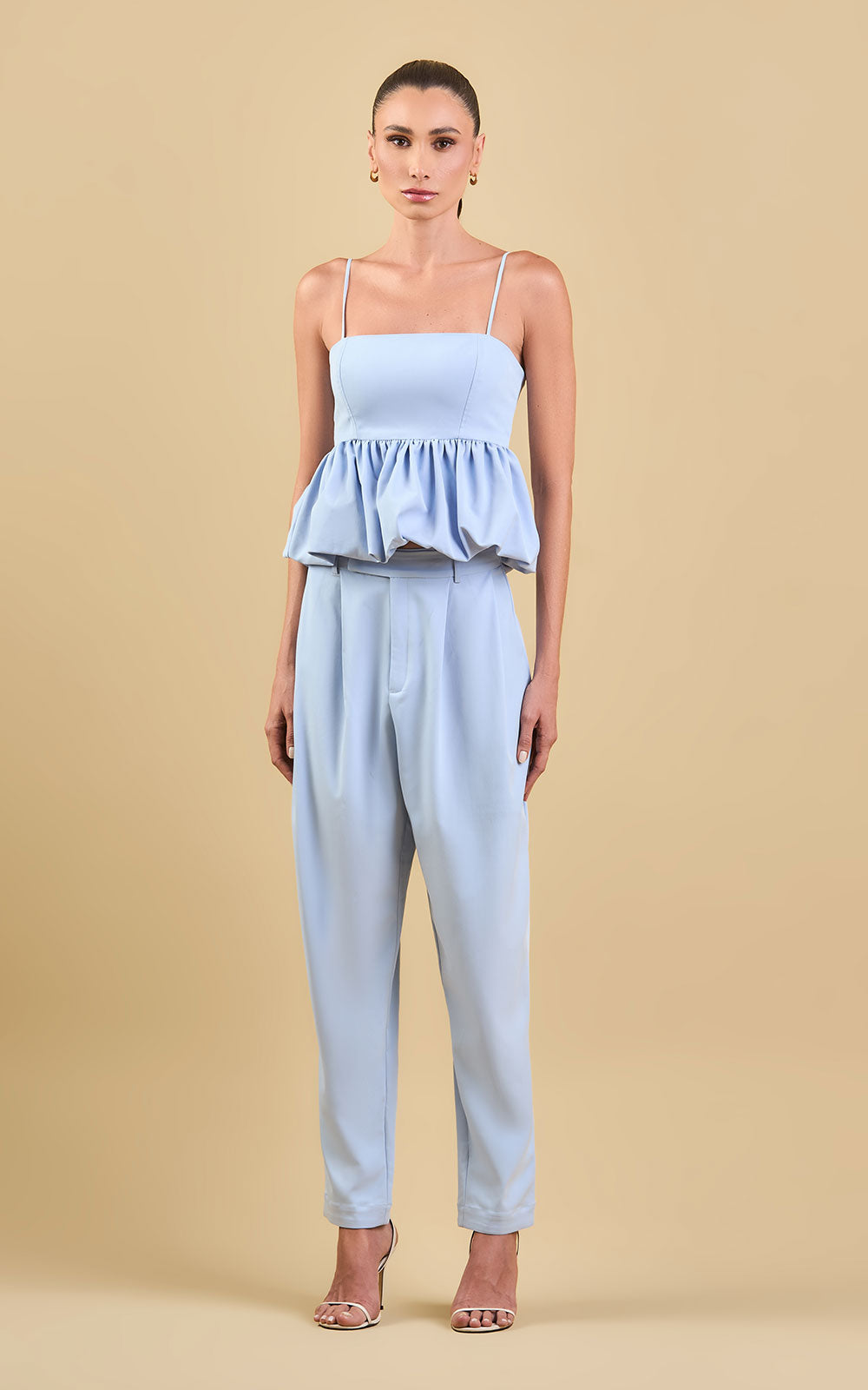 A Calça Liliana é confeccionada no tecido Hermes Blend com 75% de viscose, que garante toque macio, conforto e excelente adaptação ao corpo. O design apresenta duas pregas frontais, que acrescentam sofisticação e um visual diferenciado à peça. Conta com bolsos traseiros falsos não funcionais e modelagem levemente afunilada nas pernas, valorizando a silhueta de forma sutil e elegante. O tecido possui maleabilidade e respirabilidade próprias da viscose, tornando a peça versátil e agradável ao vestir.